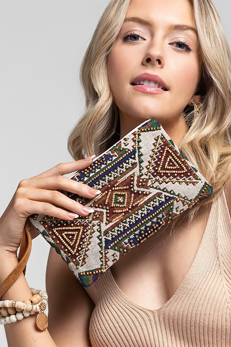 Hecho a mano, 100% algodón, diseño Ethnic, con beads, handle en cuero.