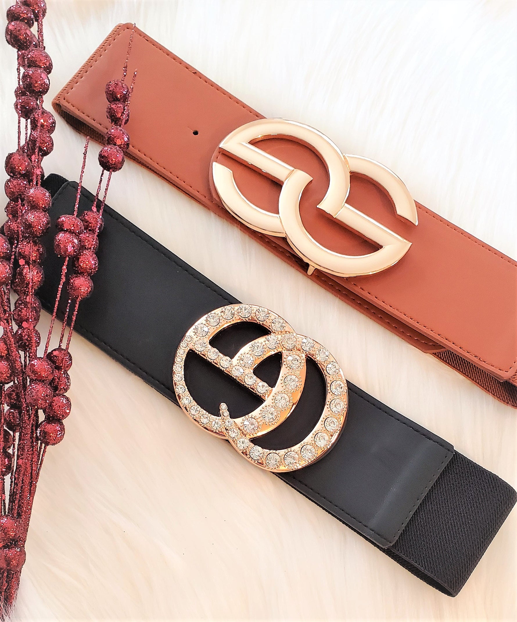 Precio unitario porRhinestone DOUBLE RING GC Metal BUCKLE Metal Pin Hook Elastic Belt One Size 28"X3"