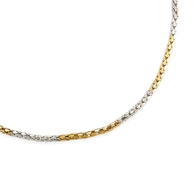 Introducing our exclusive thin two tone Water Resistant necklace. Made with a lightweight yet durable thin cable chain, this necklace is perfect for everyday wear. Its delicate design exudes elegance and is a perfect staple piece to wear on its own or layer with other pieces.