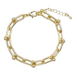 Luce elegante y sofisticada con esta pulsera dorada estilo Links. Su diseño clásico y versátil se adapta a cualquier ocasión, desde el día a día hasta eventos especiales. Los eslabones cuidadosamente trabajados crean una pieza de joyería que refleja tu buen gusto y personalidad. Perfecta para complementar tu look con un toque de lujo accesible. Una inversión en estilo que nunca pasa de moda.