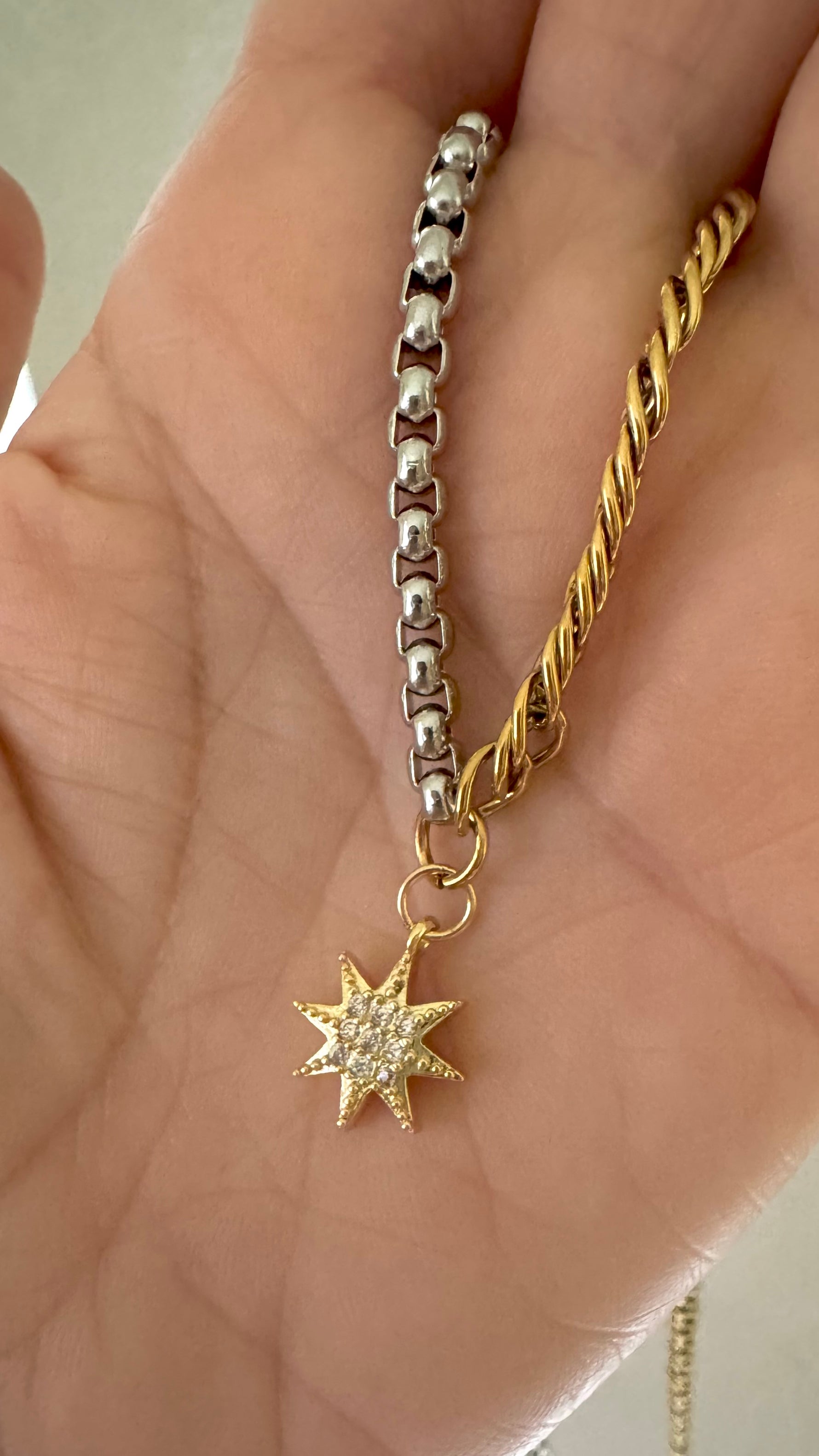 Unit price perSamira, sera la cadena perfecta para cualquier evento, color doble tono oro y plata, Stainless Steel y con su pendant cubierto en zirconia.
