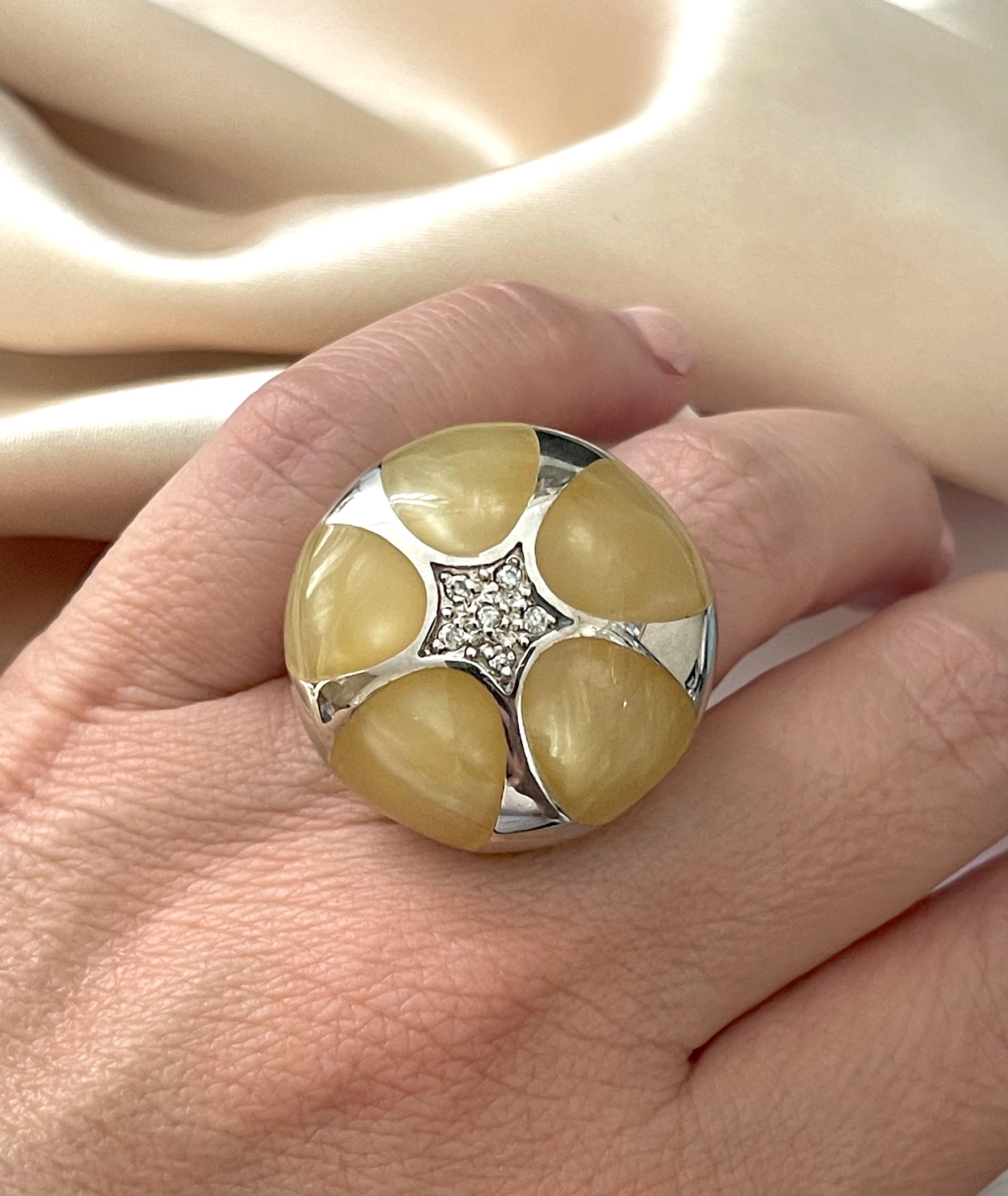 Precio unitario por¡Sus deditos lucirán como ningún otro con este anillo único! El Hongo Ring está hecho con una combinación elegante de rodio y hermoso murano. Este anillo te permite destacarte de una manera sutil y elegante sin esfuerzo. ¡Estrenatelo y te hará sentir como una princesita!